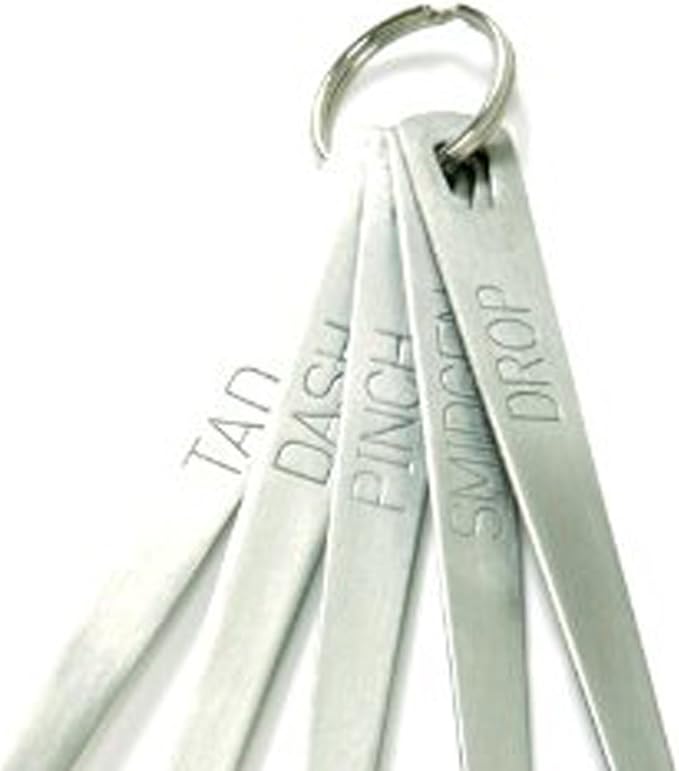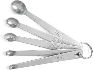 This 5-piece stainless steel set is perfect for measuring small amounts with precise accuracy. No more guesswork with measurements like "a tad" or "a pinch" - each handle is imprinted with the exact measurement.