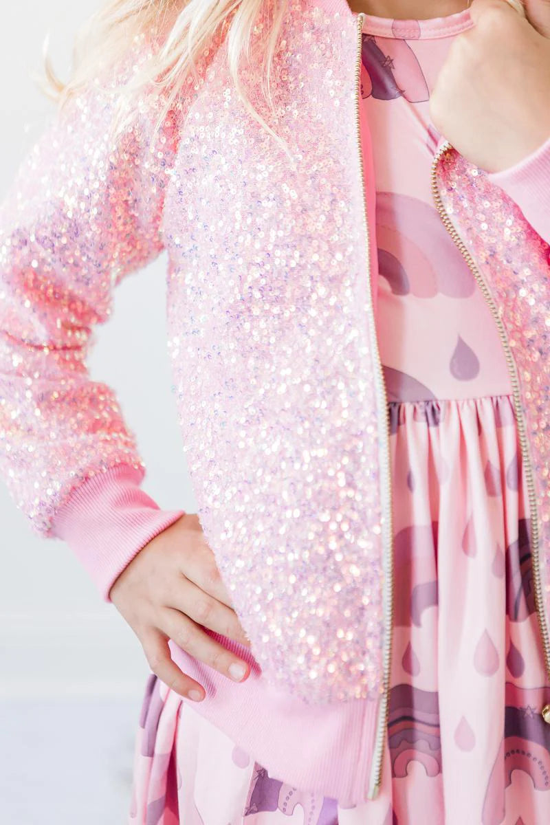 Bubblegum Pink Sequin Girl's Jacket | Mila & Rose