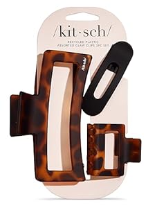 Kitsch Recycled Plastic Assorted Claw Clip Set features a trio of must-have claw clips in a variety of shapes sizes that let you set your style and elevate your look with ease.