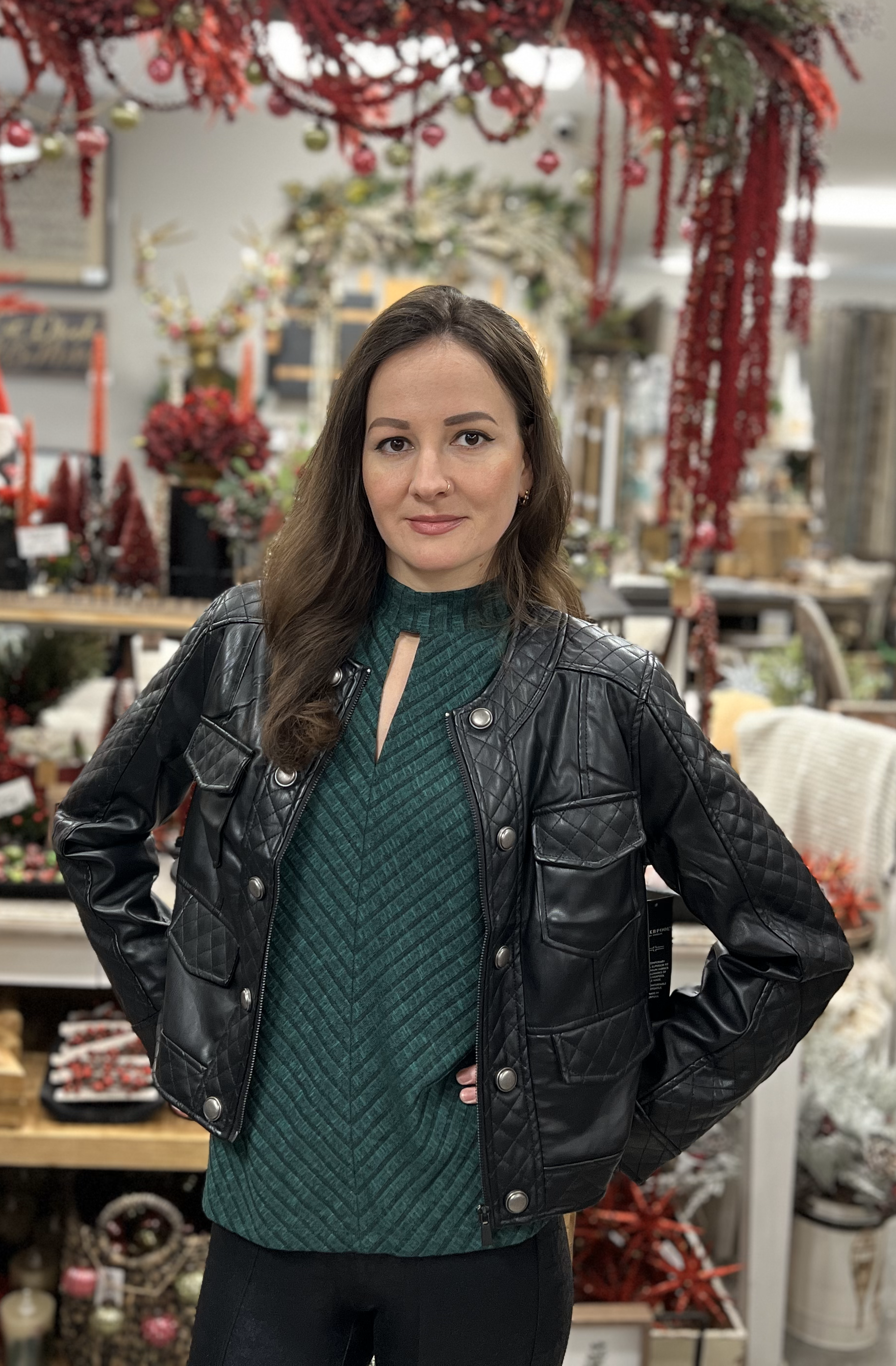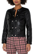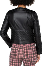 Our stylish Quilted Zip Jacket is the perfect addition to any wardrobe! This jacket features a flattering scoop neckline that enhances the collarbone, giving you a chic and elegant look. Vegan leather and a quilted design provides both comfort, warmth and style, making it perfect for colder weather.