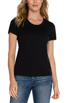 Scoop Neck Short Sleeve Top, Black | LIVERPOOL