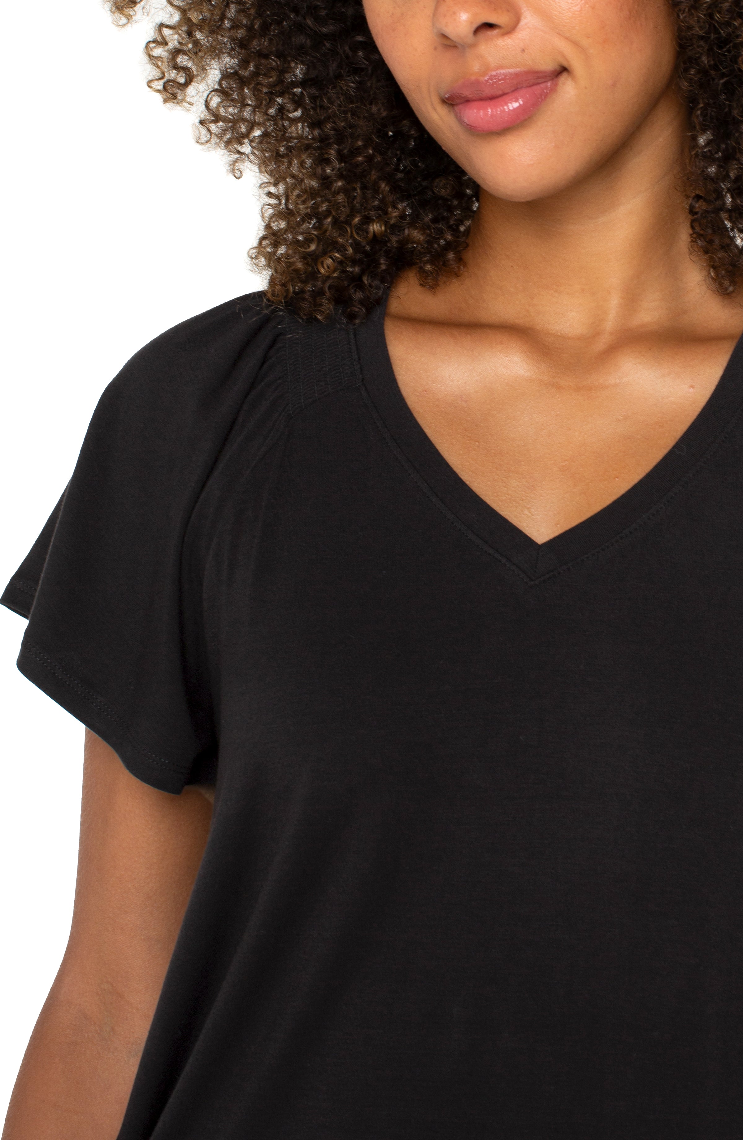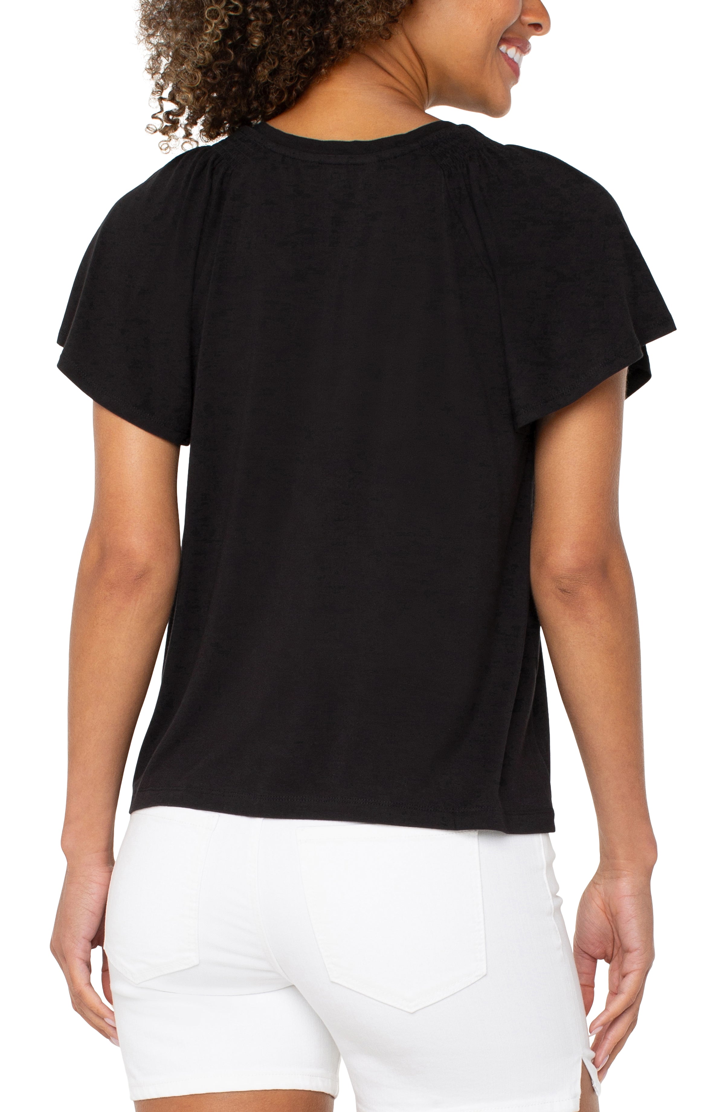 Short Flutter Sleeve V Neck Knit Top, Black | LIVERPOOL