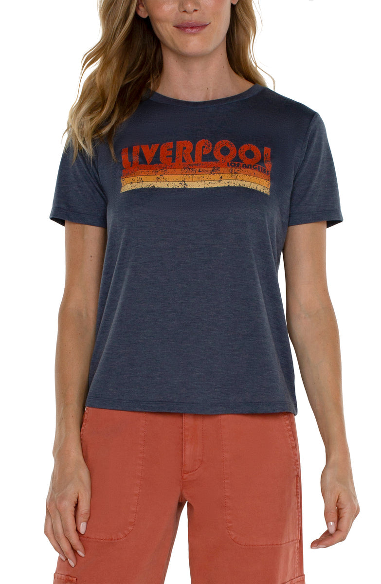 Groovy! Step into summer in comfort and style in our Liverpool ultra-soft heather jersey knit crew neck tee. Featuring a retro Liverpool logo, you'll be channeling those vintage vibes wherever you go.