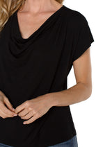 Short Sleeve Draped Cowl Neck Knit Top, Black | LIVERPOOL