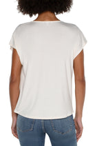Short Sleeve Draped Cowl Neck Knit Top, French Cream | LIVERPOOL
