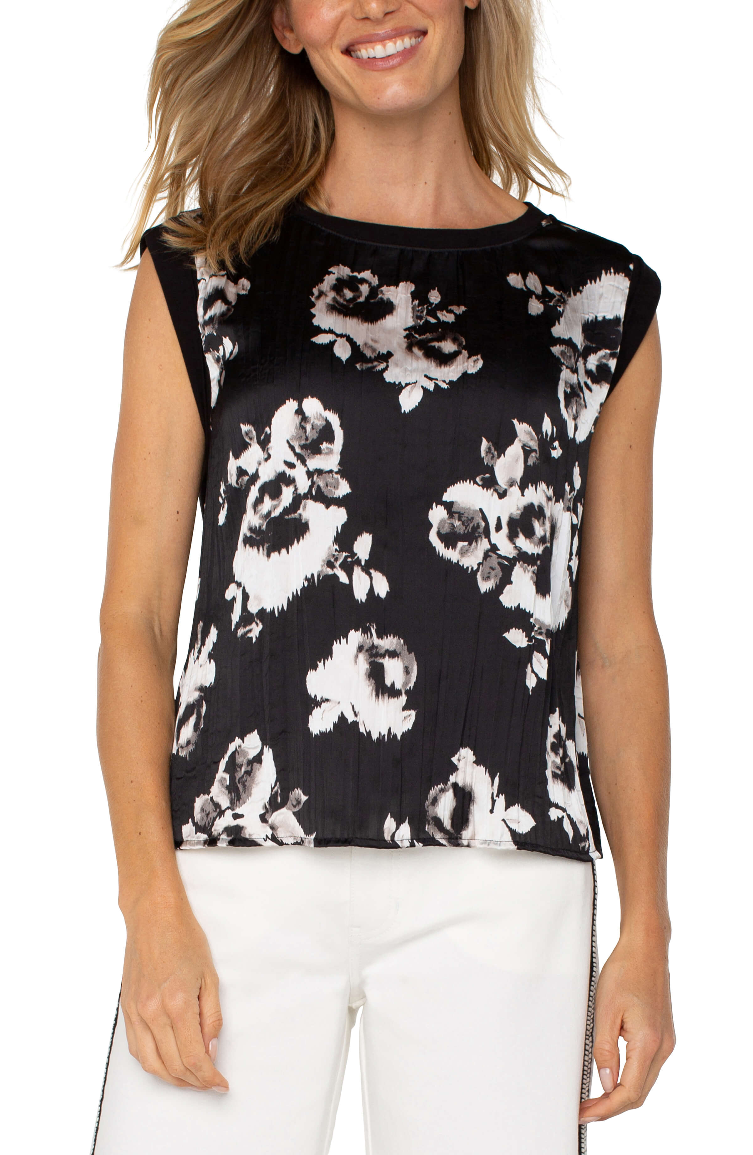 Sleeveless Woven Knit Top, Black w/ White Floral | LIVERPOOL