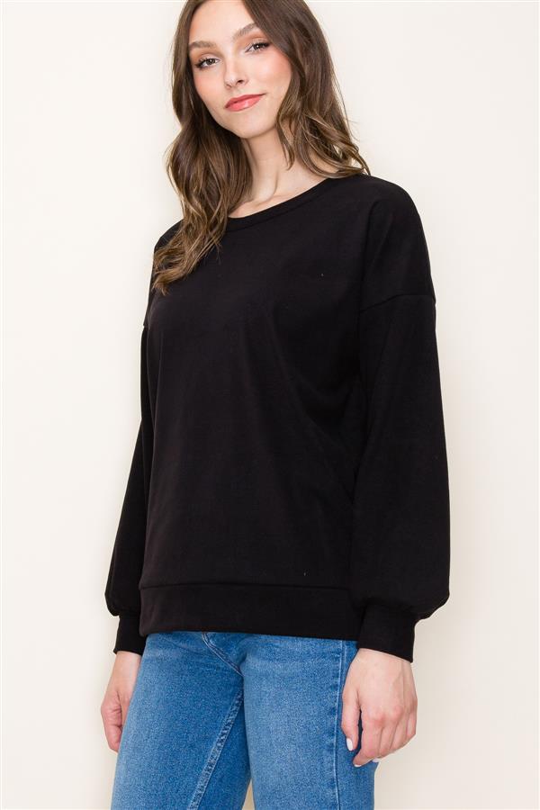 Soft Round Neck Sweater, Black | Staccato