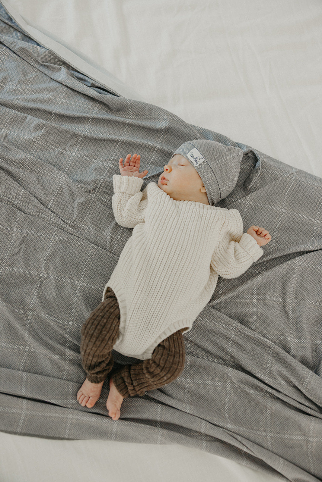 - High Quality and Trendy Designs - Copper Pearl prides themselves on making high quality products that always look great on babies, moms, or in your nursery. The top knot hats are simple, modern, and sure to elevate any baby's style.