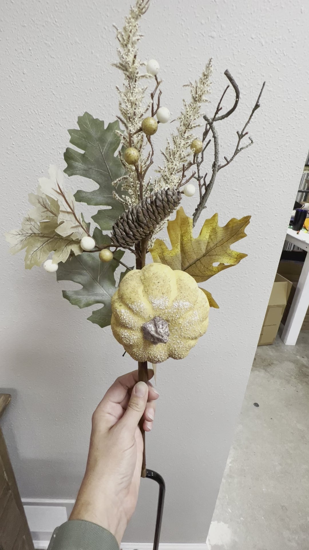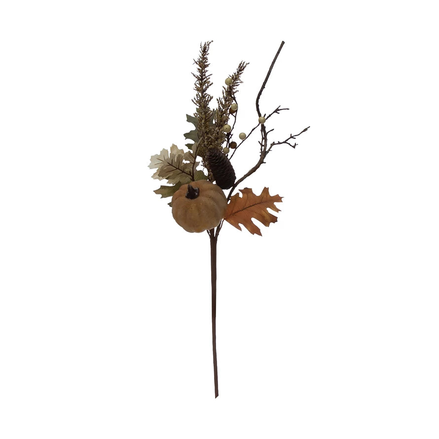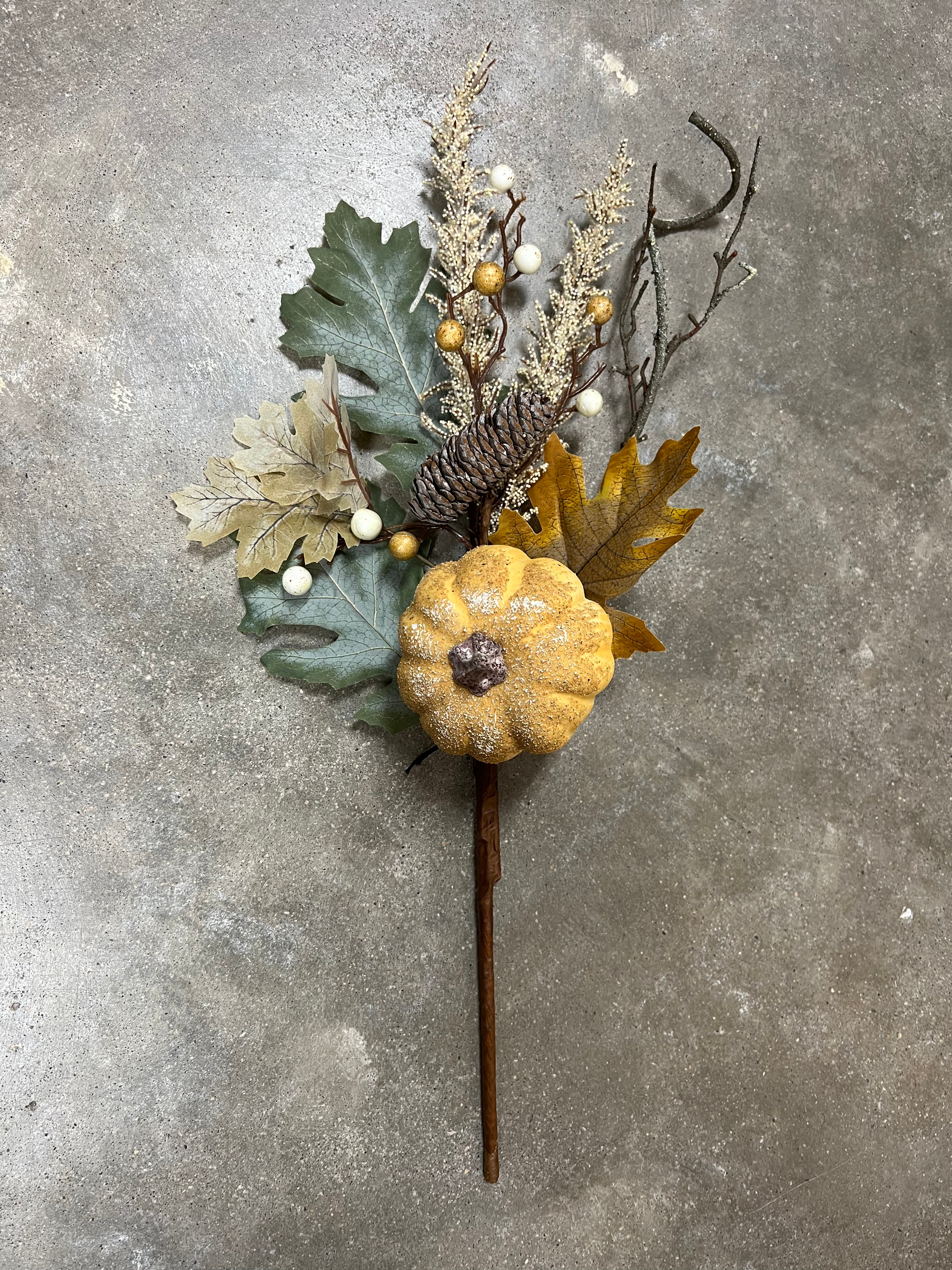 Twig & Oak Leaf Pick w/ Pumpkin, Pinecone & Berries