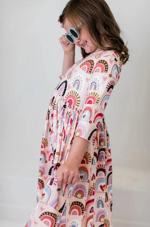 Vintage Rainbows Twirl Dress, 3/4 Sleeve | Mila & Rose
