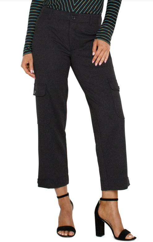 Utility Crop Tab Hem Knit Cargo Pants, Black | LIVERPOOL