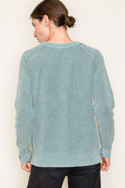 Add a splash of cool charm to your wardrobe with the Washed Yarn Henley Neck Half Button Sweater in Dark Mint by Staccato.