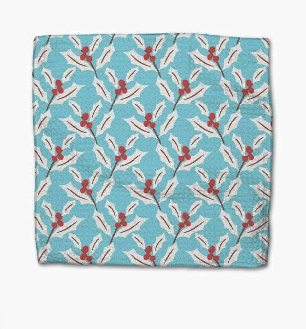 Dish it out. These can take it! Our Dishcloths are everything you love about the original Geometry Kitchen Towel – in mini-size! Scrub, wipe, shine and repeat – our fast-drying, super-absorbent dishtowels can handle your biggest messes with ease (and a whole lot of style). Created from our signature Geoweave(™) fabric, perfect for surface cleaning and shining. SKU: DC-MF-winter-holly GTIN/UPC: 00840392759991 ... * ♺ Made from post-consumer recycled materials * 10" x 10" * Single-sided print ... Chore responsibly. From scrubbing pots and pans to wiping up spills to accenting your kitchen with the season’s most captivating prints, our Dishcloth Sets will be your constant companion – and they’re a friend to the environment too. Our towels are created from post-consumer recycled products and manufactured using less water than traditional methods, minimizing our carbon footprint. And due to its patented weave, high absorbency and quick dry time, you can clean with fewer harsh